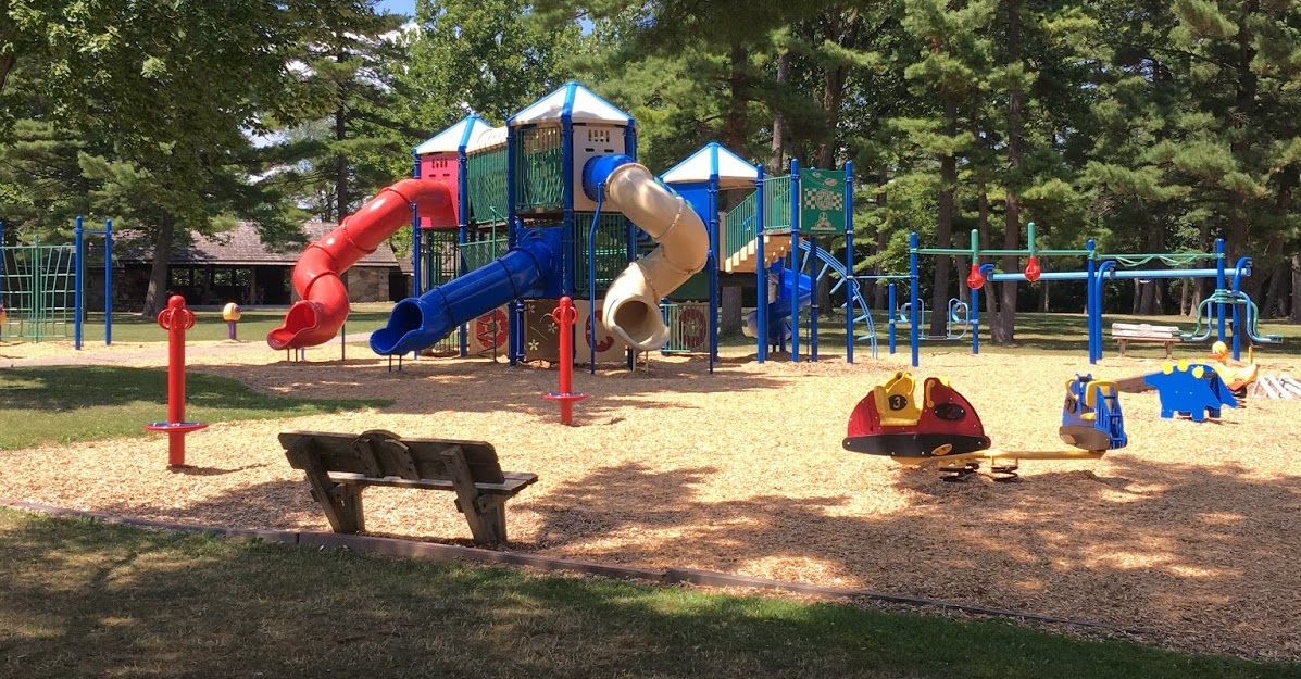 There are bathrooms, plenty of trashcans, picnic tables and three shelters you can reserve. Your kids won’t be bored exploring the three playgrounds, which feature activities for children 2 and up. None of the