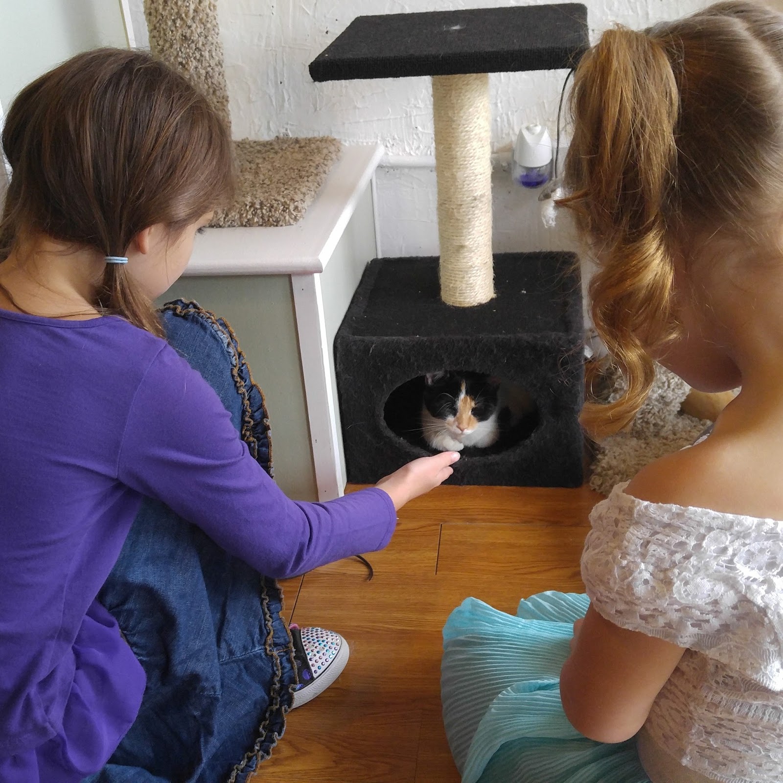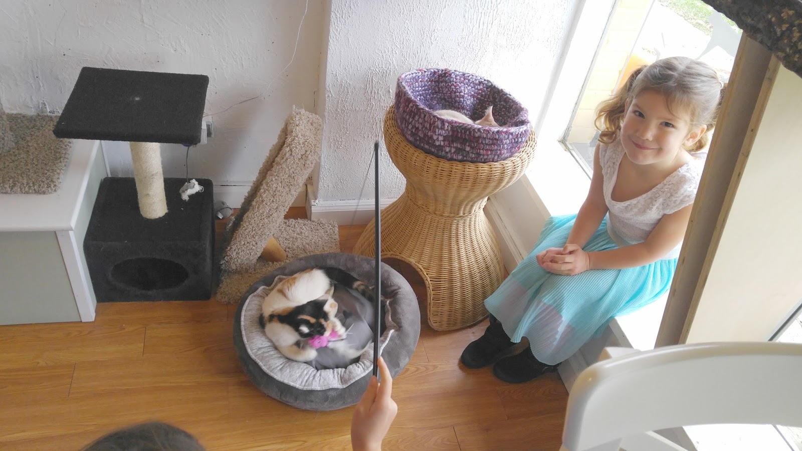If you are just visiting and not looking to adopt, it is a great place to enjoy some time with the cats, and your family. Our girls had a fantastic time interacting with the kitties, petting them, playing with them and watching them.