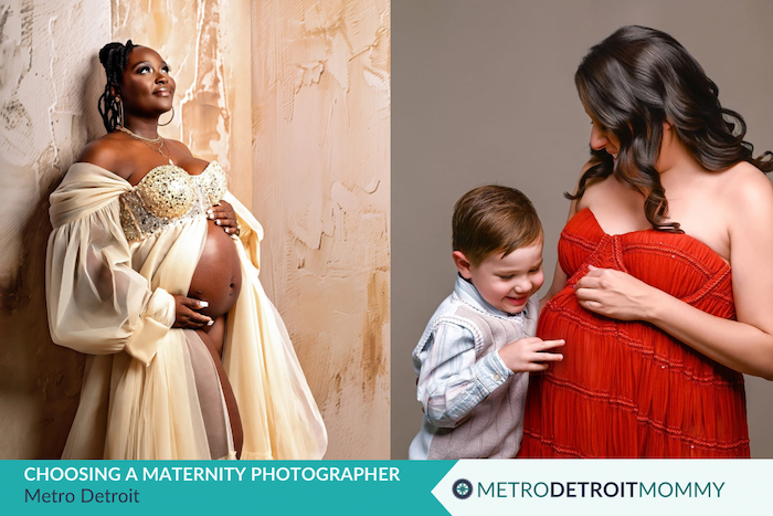 And if you’re also thinking about newborn photos, which most moms are, many photographers offer the chance to reserve your newborn session at the same time you book your maternity session. Oakland County and Macomb County photographers with full studios book out fast on both. Getting both on the calendar early removes a significant source of stress in those final weeks. Newborn photographers that offer posed portraits will only take babies up to 3-4 weeks, so scheduling these both together is recommended too!