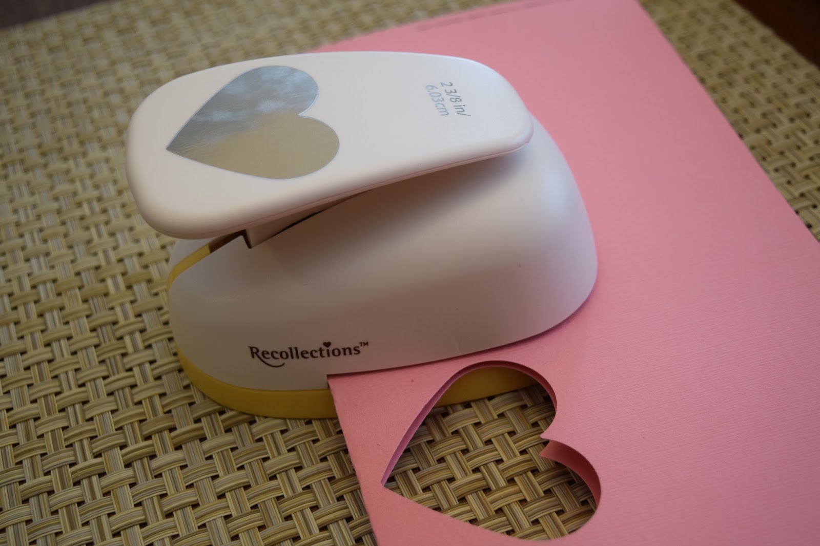 Gather your supplies.  I was able to purchase the paper and heart die cuts at Michaels.  Tip: They always have a coupon.  I just go to the Michaels website and download it to my phone.