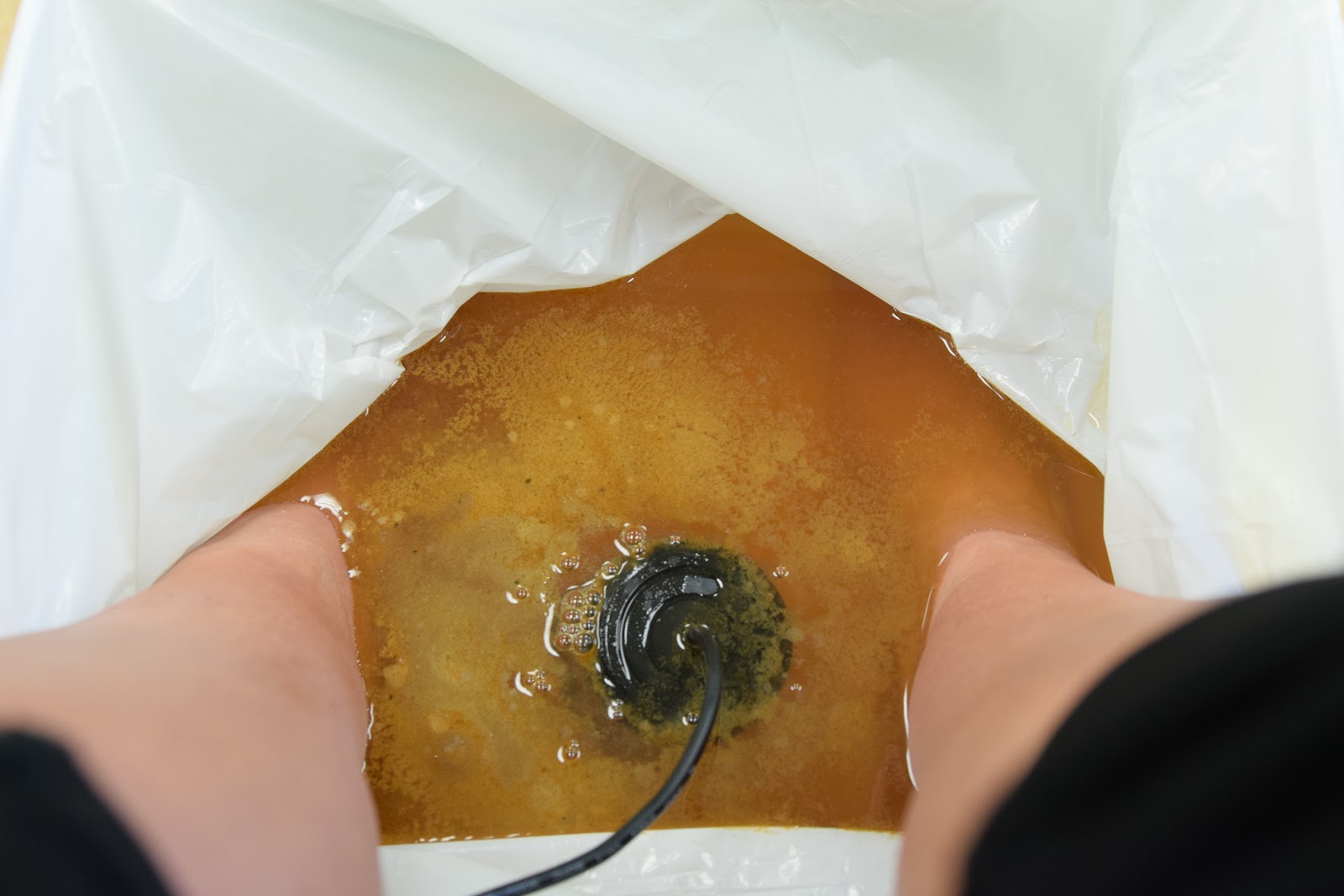 Now, this is not your normal foot bath. You soak your feet in ionized water which helps release positive and negative ions into the water. This turns the water a rusty color. Then as the ions begin to energize your cells, you begin to release heavy metals, fat, acid, and other debris from the pores in your feet. Everyone’s foot bath will look different. My water showed a white foam on top which suggests I released toxins from my lymphatic system. This makes complete sense because I was fighting a cold which I never ended up having! What surprised me most, was how soft my feet were once I was done with the 30-minute soak. It was great! I am already planning my next visit!