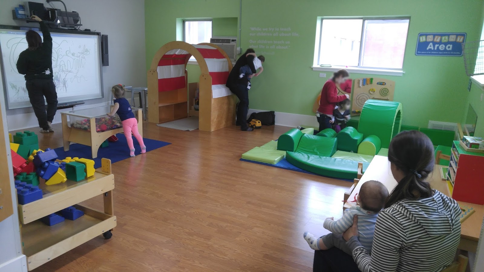 Cleanliness is of utmost importance, therefore the space is a shoe-free zone. The First Impression Room is also outfitted with safe “smart” electric outlets. The staff also adhere to a rigorous cleaning schedule and use non-toxic cleaners in the space.