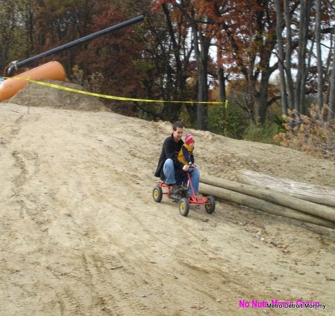 large pirate ship and castle, a giant slide that fits one to two people, a tube slide, pedal carts, and a big sand area where the kids can get dirty.  There is also an area with many goats walking around on what looked like an obstacle course. After all of this fun, my family and I never made it to the corn maze,