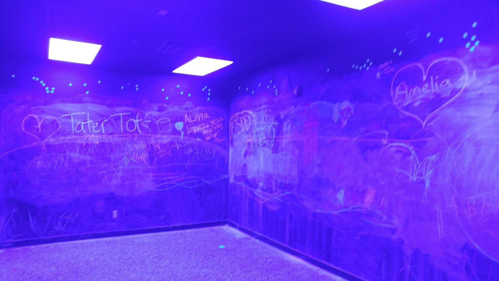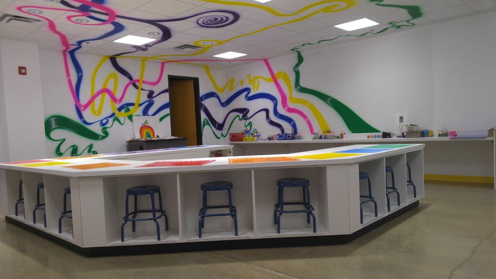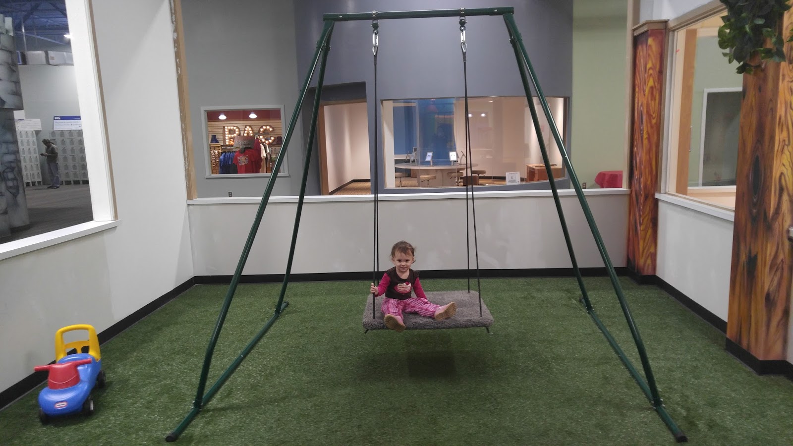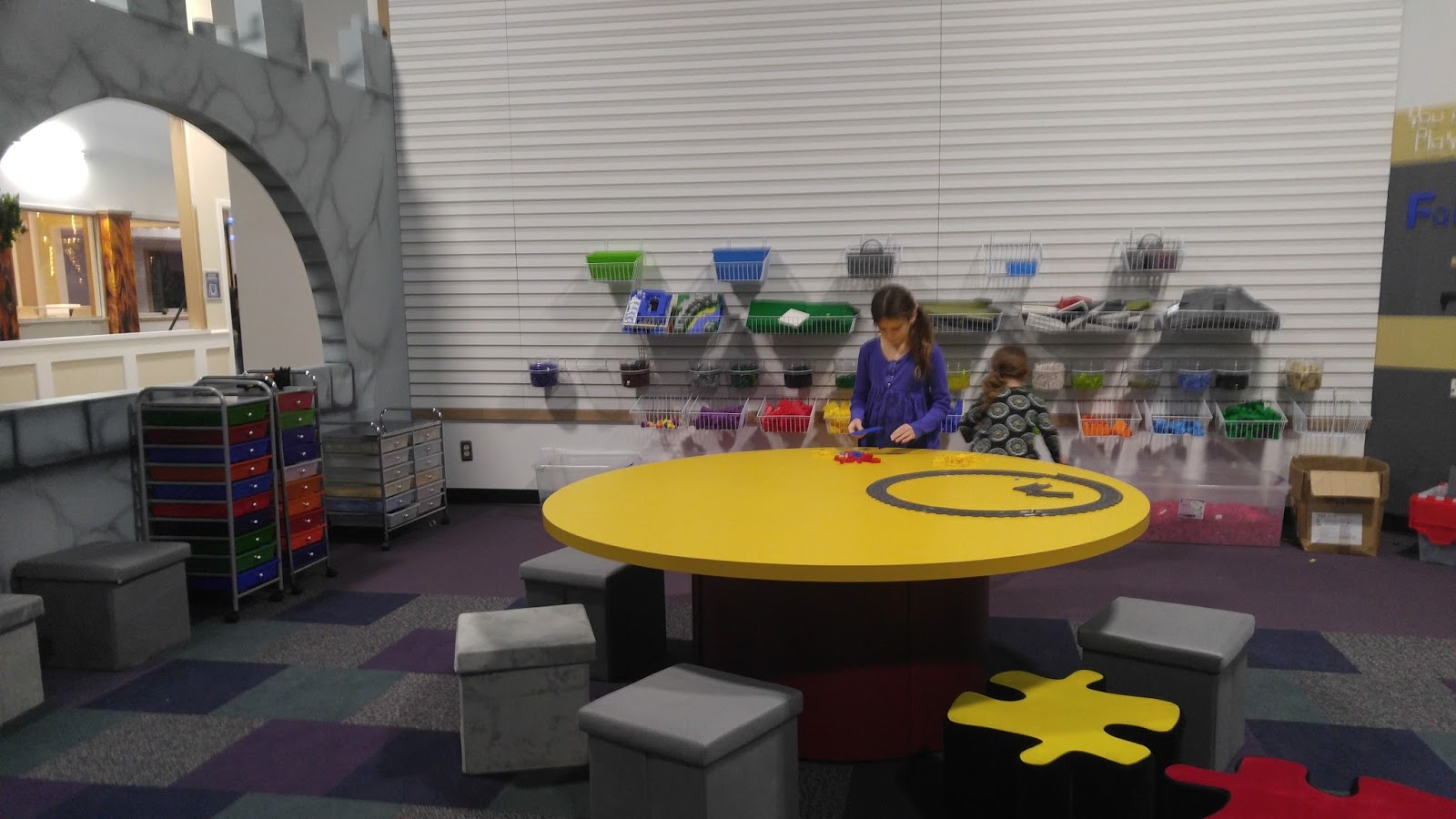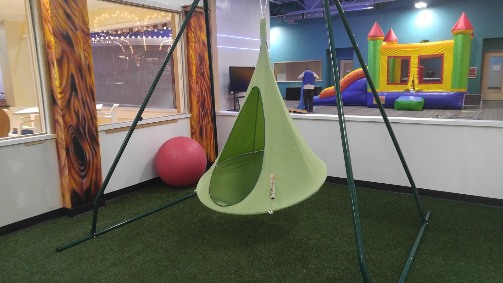 The 25,000 square foot facility offers so much for children to do, including a computer cafe, art studio, carousel (additional fees apply), Lego castle, laser light chalk room, calming rooms, swing central, and parent bistro.