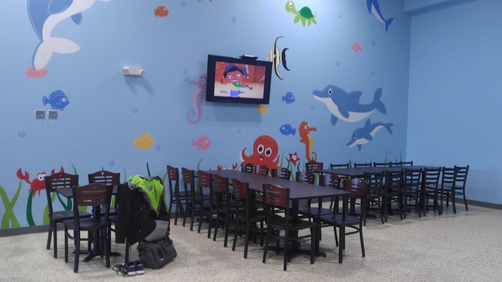 Finally, there is plenty of seating and tables within the play space.