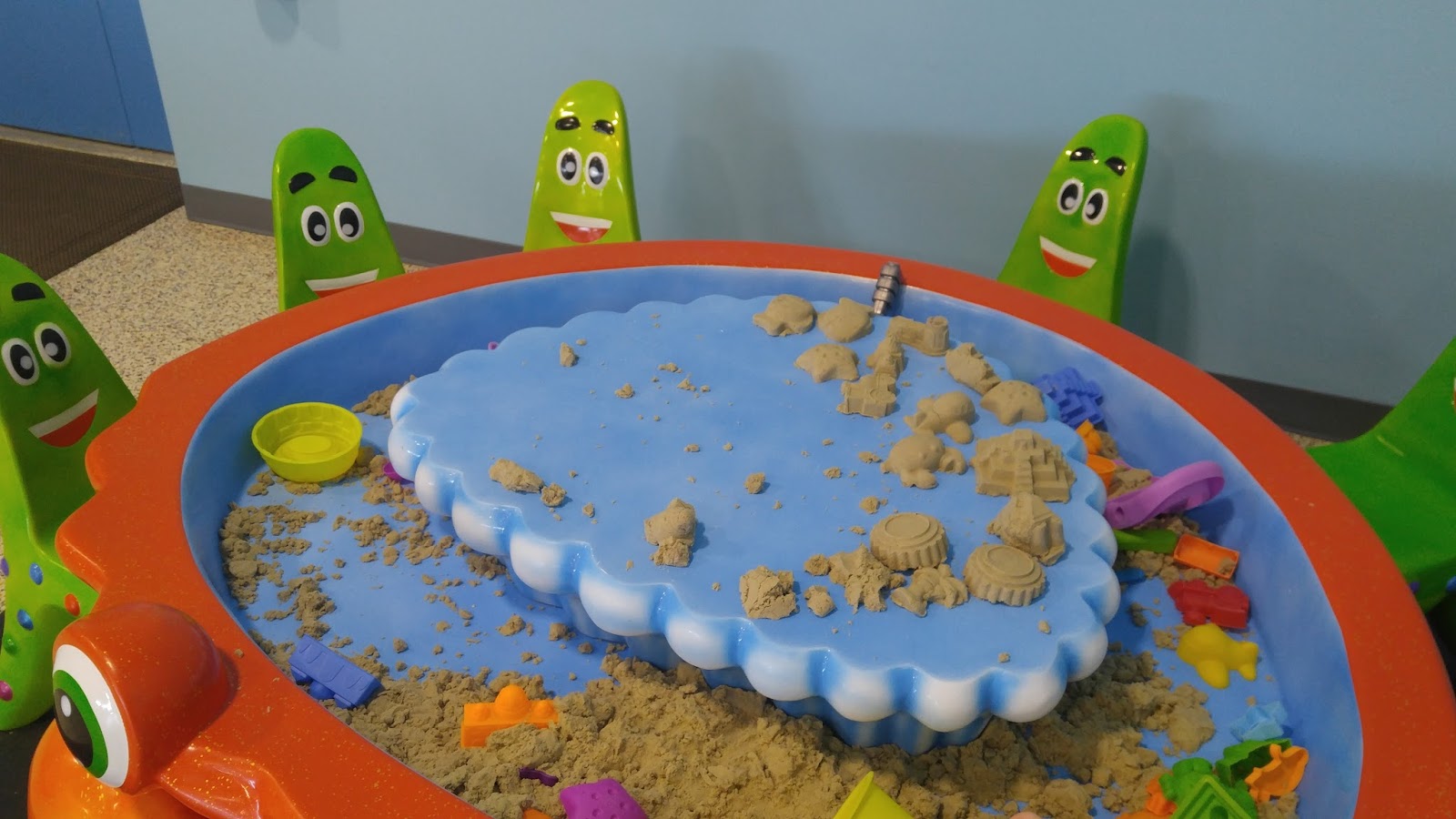 The kinetic sand was a big hit with Carlyn and Evelyn.